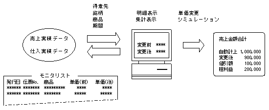 指定した年月の 売上,仕入,値引 に関するデータを集約し、経営判断の基となる各種の情報を提供します。