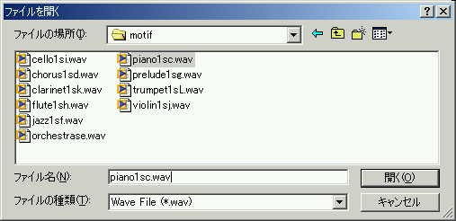 ダウンロードした WAVE ファイルを指定します。