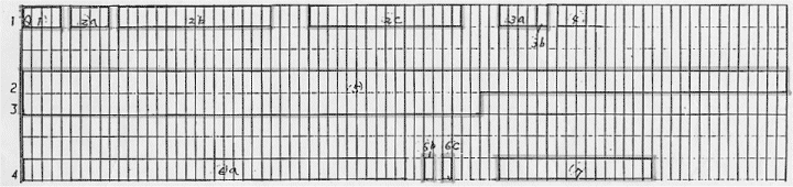 | (1) 平面名称 | : | 2つ以上の同一名称のものがあってはいけません。 先頭の一文字がCである場合はコメント行とみなし読みとばします。 平面名称に’△△999’を与えると平面データの読み込みを終了します。 |