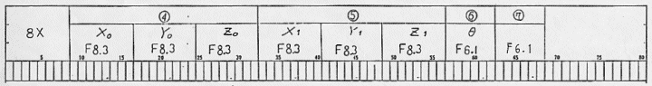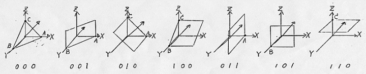 | (2) 平行性状コード | : | 入力する平面が、X,Y,Z軸のいずれかに平行な場合、該当カラムに「1」を立ててください。 |