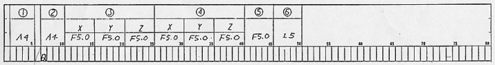 | (1) 壁面名称 | : | 同一名称のものがあってはいけません。 先頭の一文字がCである場合はコメント行とみなして読みとばします。 壁面名称に’△999’を与えると、壁面データの読み込みを終了します。 |