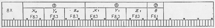 | (1) 回り方コード | : | 0又はブランク …点B〜Eのまわりは時計まわり,1…点B〜Eは反時計まわり |